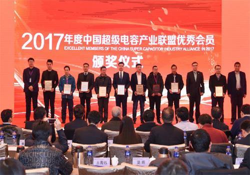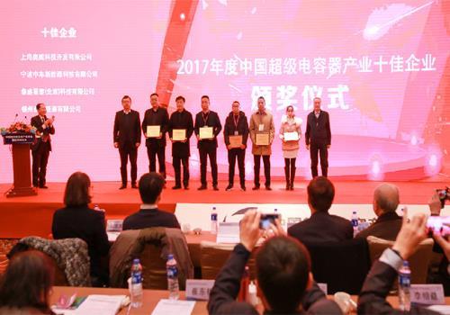 浙江1号娱乐电子科技有限公司自13年创办以来,一直致力于超级电容器、储能模块、超级电源及石墨烯储能器的研发、生产、销售及服务。凭借着研发中心成员不懈努力,我司研发、改进出多款新型产品,主要有石墨烯储能器、纽扣式超级电容器、柱式超级电容器、模组超级电容器、钛酸锂电池等。经过多年的努力,我司拥有属于自己的技术核心及技术团队,积累了很多在超级电容行业领域的经验。本次会议公布了“2017年度中国超级电容器产业十大事件”,同时还举行了“2017年度中国超级电容器产业十佳企业”“2017年度中国超级电容产业联盟年度优秀会员”的颁奖仪式,1号娱乐通过上下员工的努力拼搏,有幸成为其中的一名幸运儿。